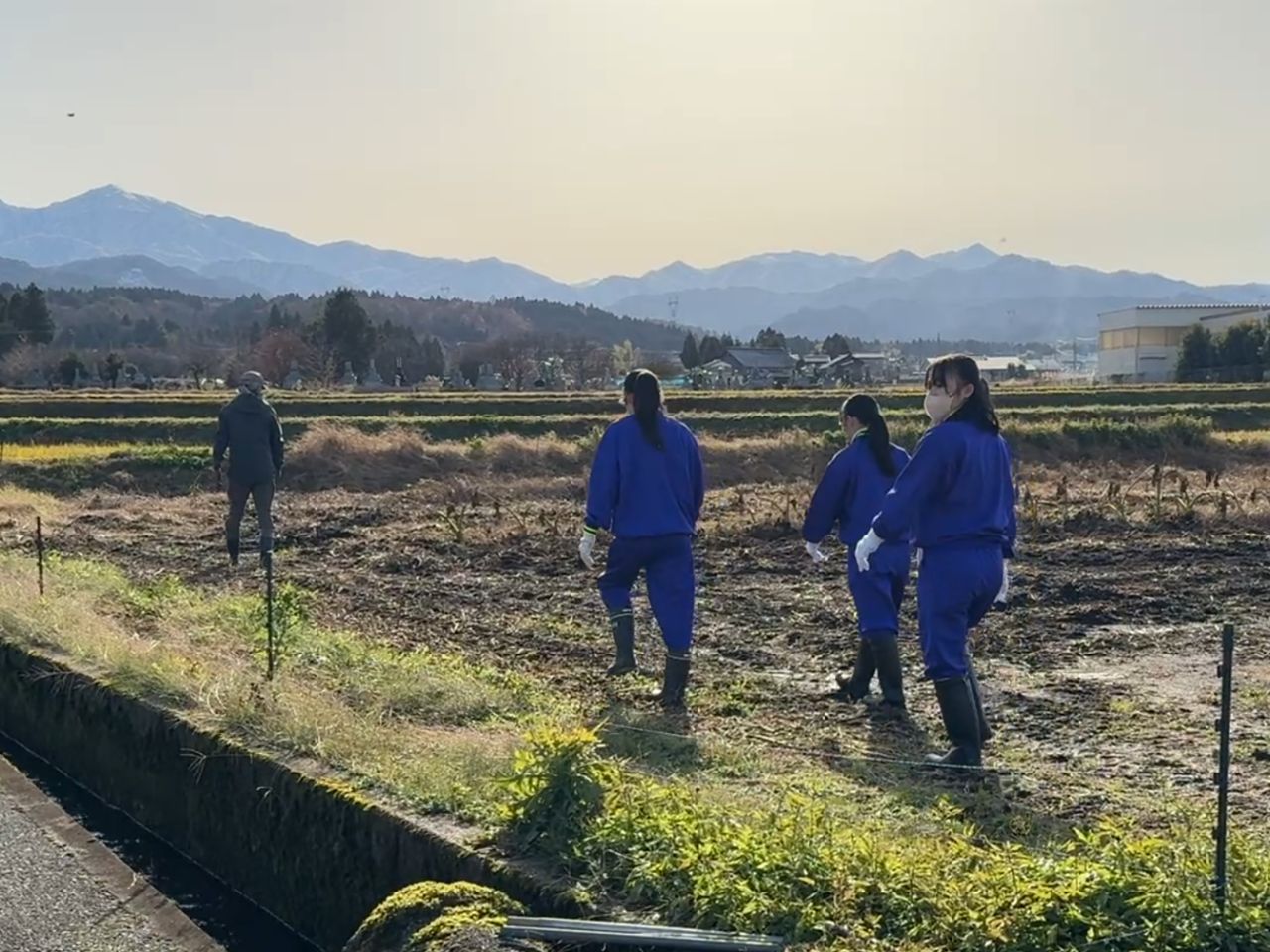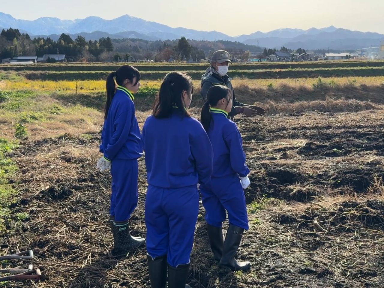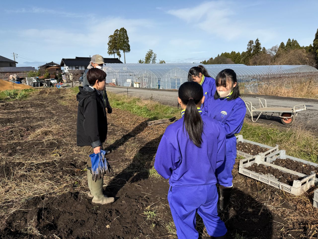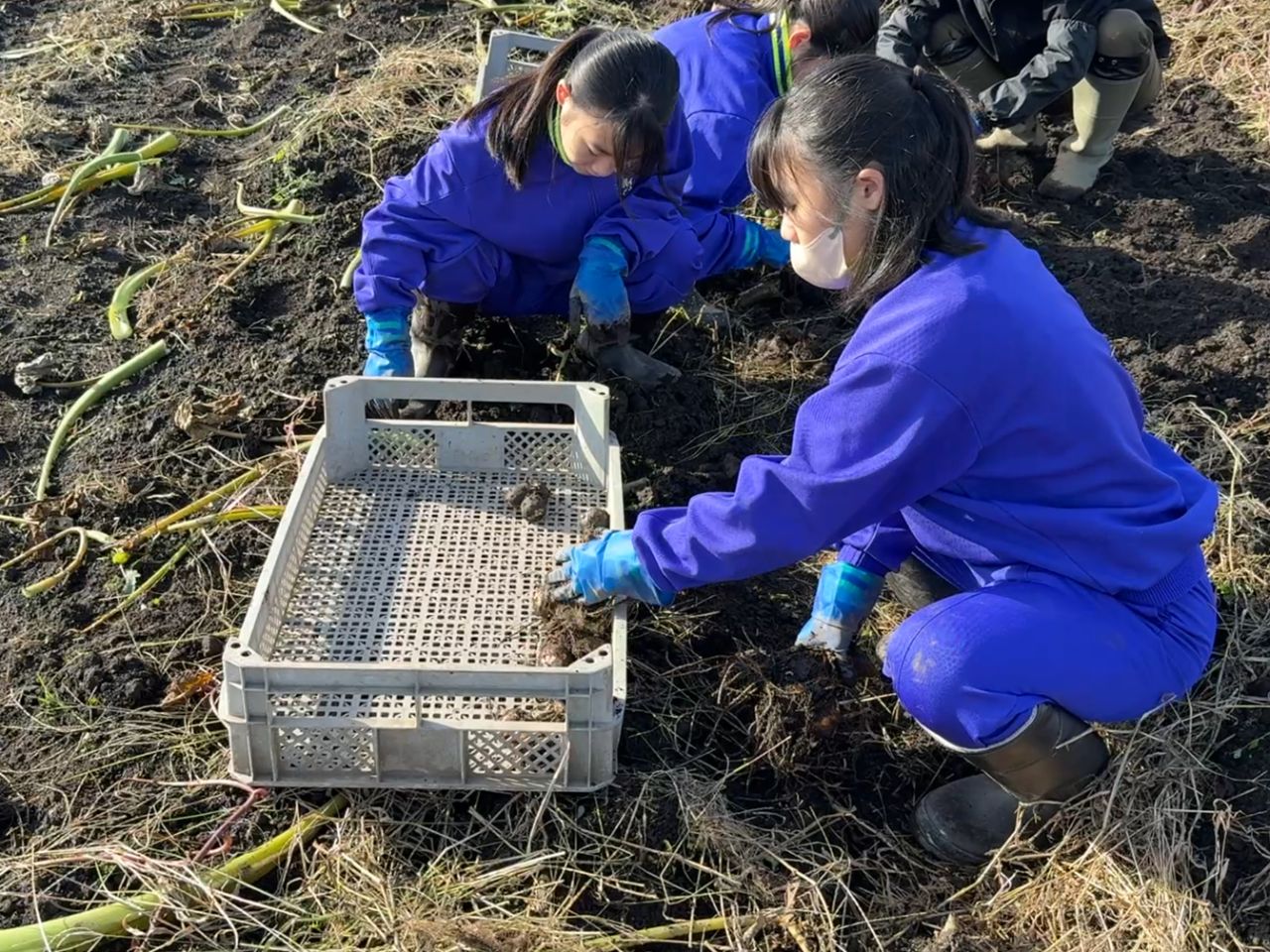 今回の里芋収穫体験には、上市中学生(3名)が参加しました。