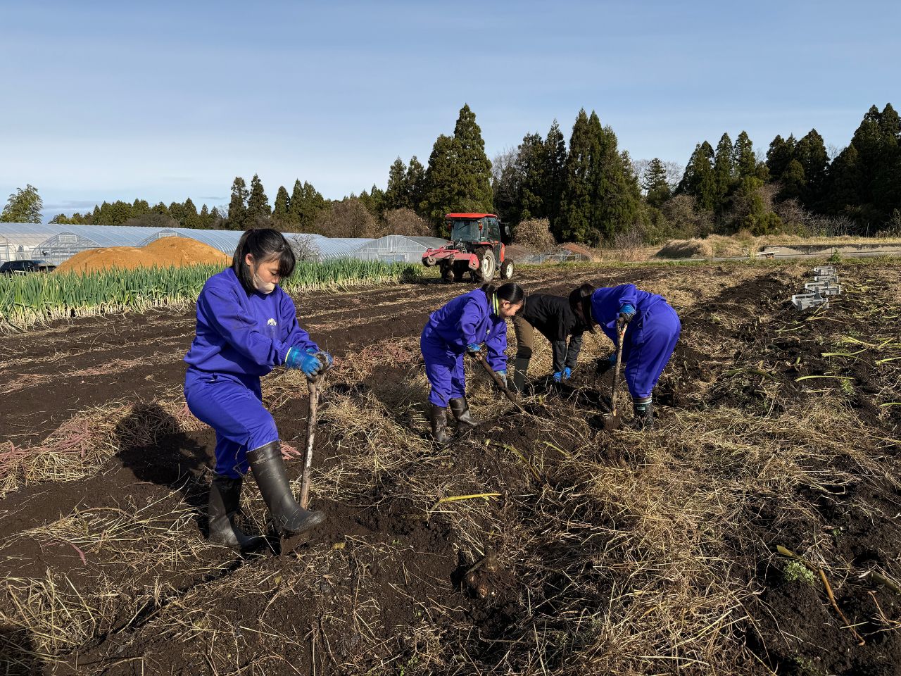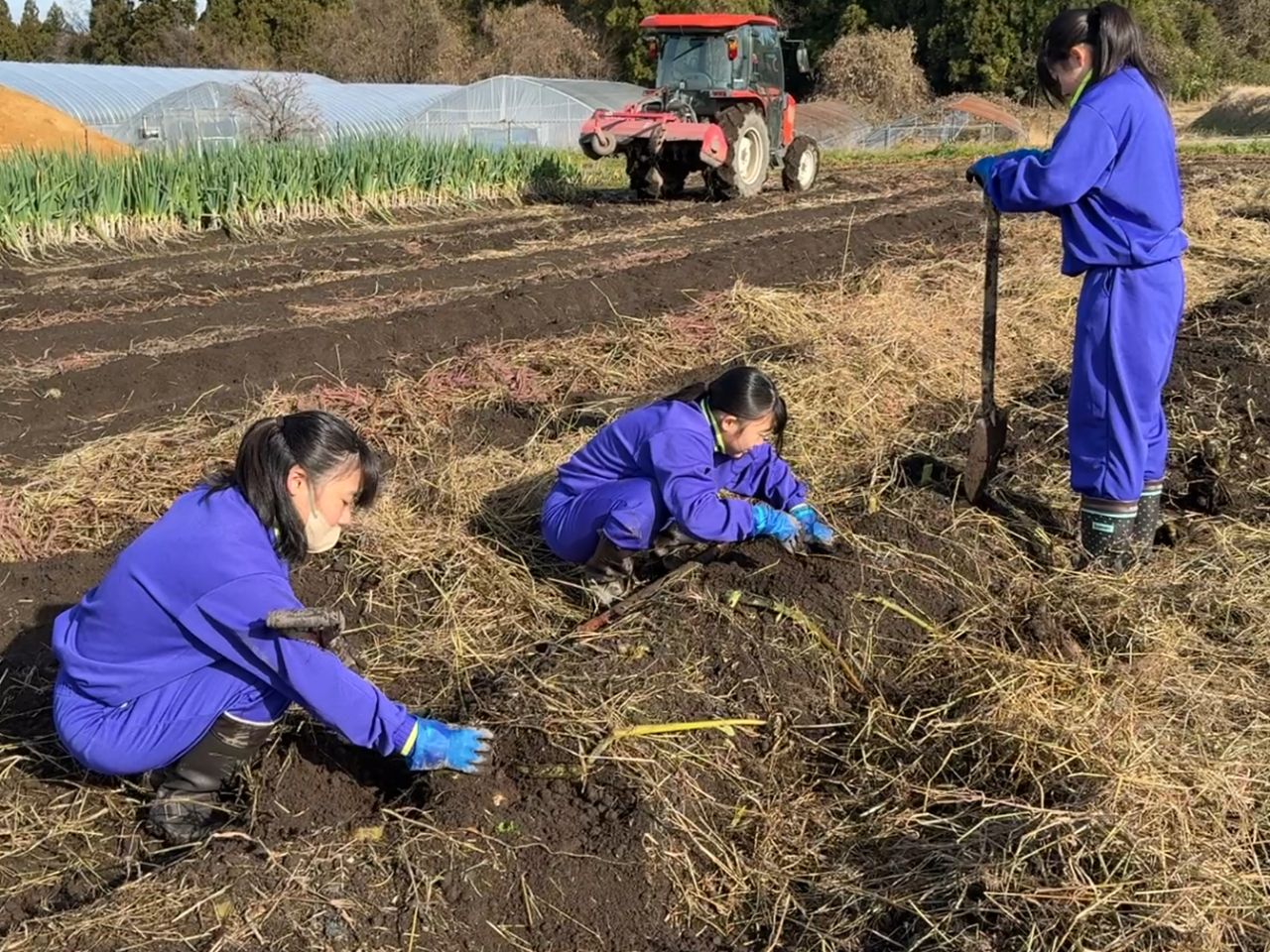 今回、手掘りで里芋の株を掘り起こしましたが、通常はトラクターを用いて機械で里芋の株を掘り起こしているということでした。